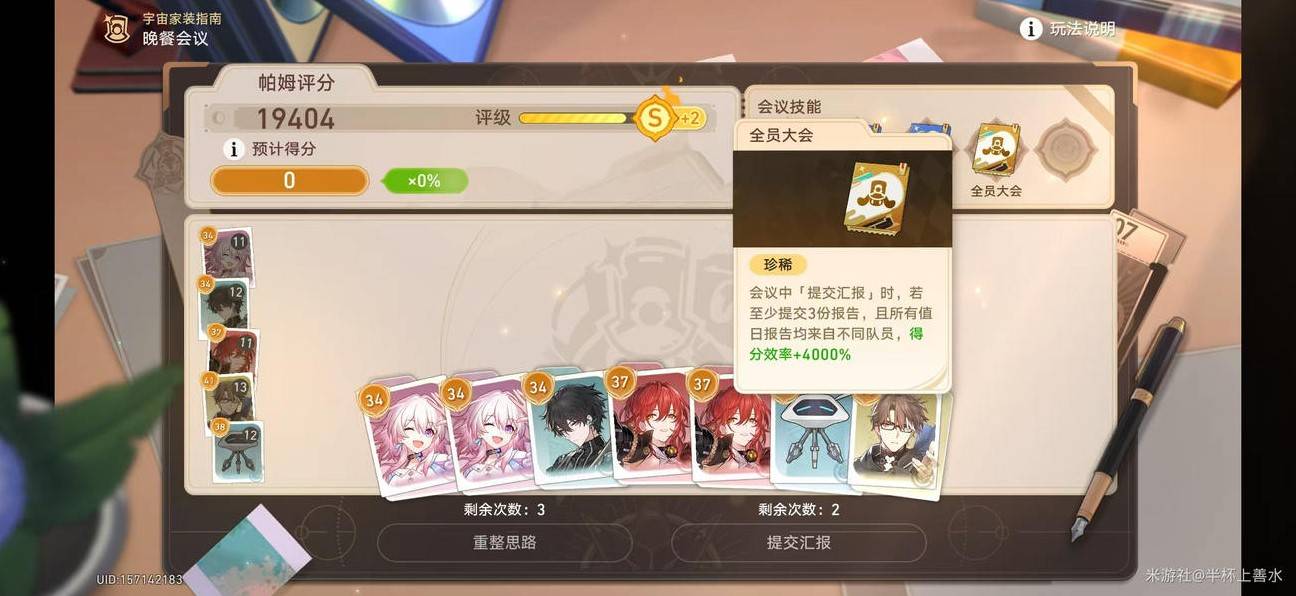 当然有的时候需要结合会议技能去实际匹配汇报报告的情况,比如像这个【全员汇报】就需要使用不同的报告来加成