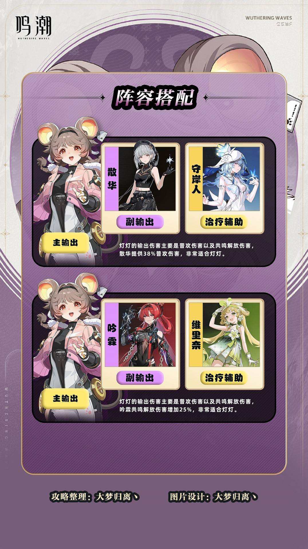 合理声骸、武器和队伍搭配,充分发挥灯灯潜力,取得更好战斗效果。
