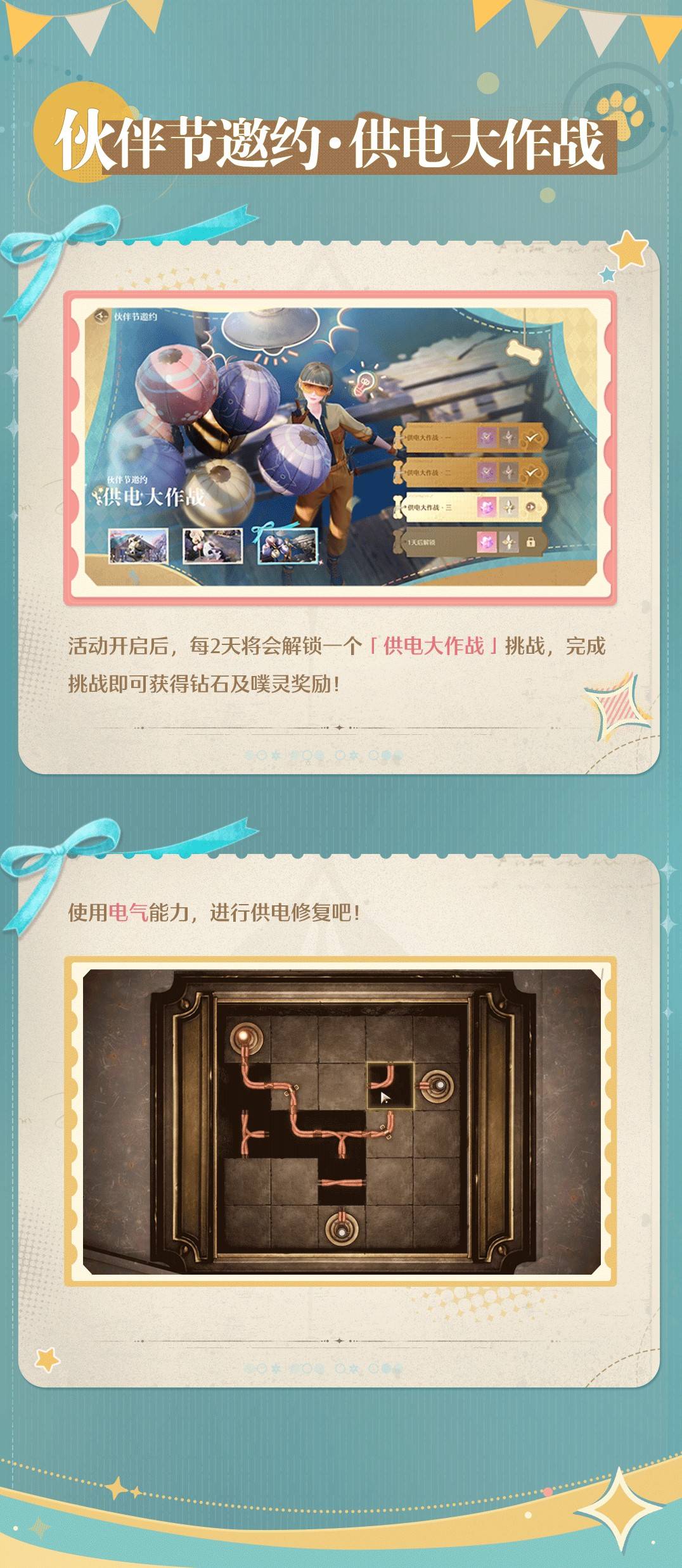 在伙伴节活动中,搭配师们可以参与「接受邀约」剧情任务,「供电大作战」挑战以及「趣意见闻」见闻任务,并获得对应的奖励与称号。
