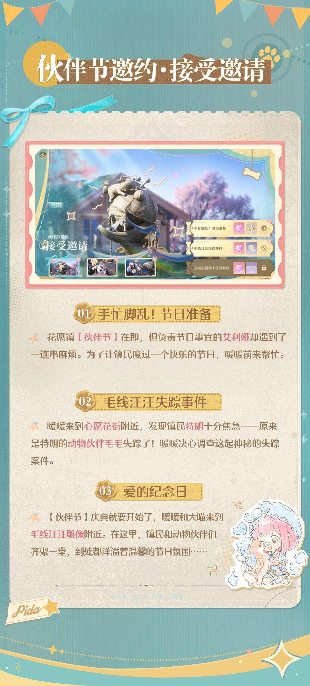 为了纪念英勇的毛线汪汪,表达对爱与守望相助的深深敬意,花愿镇的居民们特意设立了一年一度的【伙伴节】。不过今年伙伴节,似乎出现了一些突发情况……