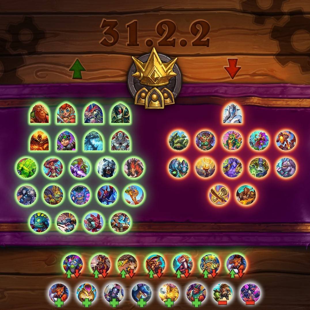(2)随从:邪能元素、热情沙锤手、奥术火炮手、巨狼艾德林、食尸卡布拉、兵主的勇士、蓄能女沙皇、老大哥、灵魂回溯者、鲁莽的跳崖鱼人、黑客鱼人、拜戈尔格国王、变异的鞭笞者、沙龙舞者。