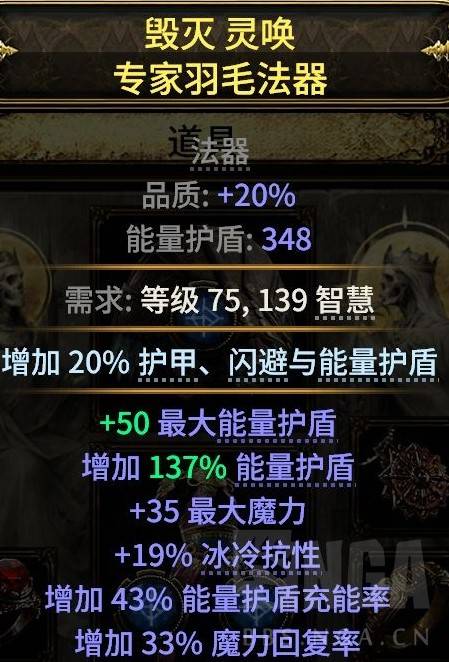 装备高护盾法器并打造20%品质和20%护盾宝石