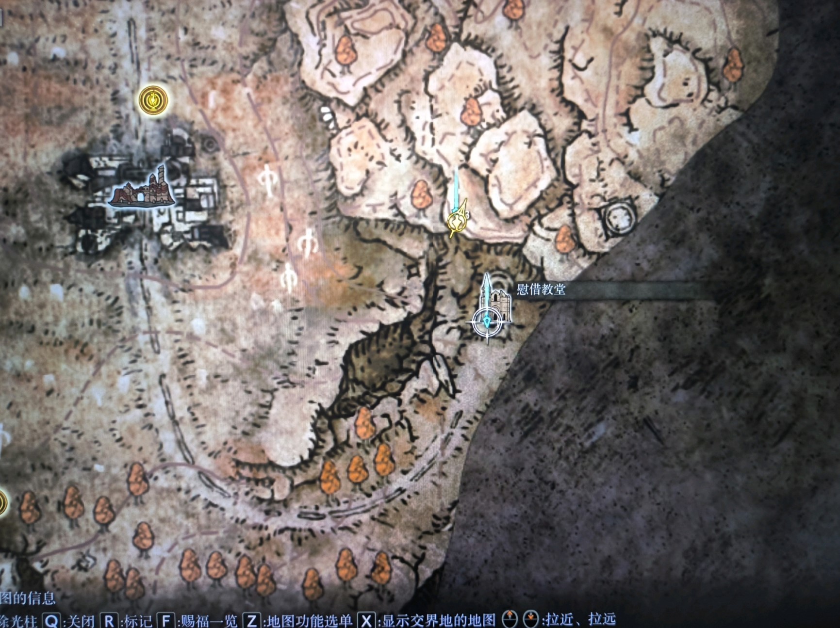 首先解锁赐福点,门口右前方有地图,注意门口有怪,很强,近战首见挺容易死的。