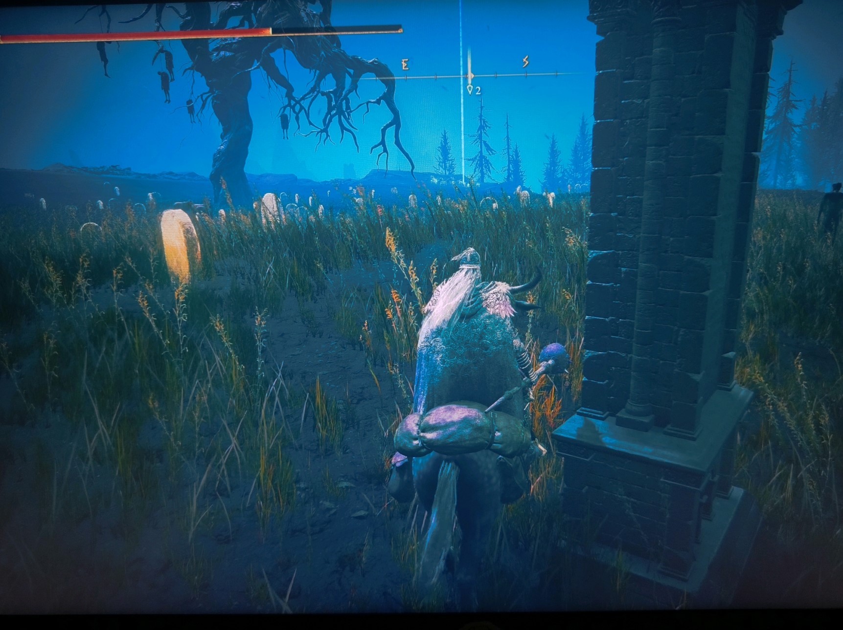 火吻废墟的赐福点,左边是一个灵庙,里面有一个人形怪,打完给孤牢大剑和孤牢铠甲一套。