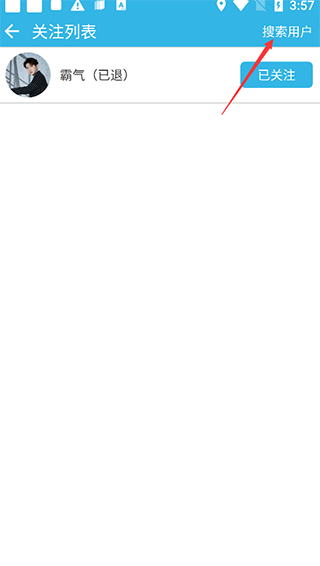 进入“关注”界面后,找到右上角的“搜索用户”功能,点击它。