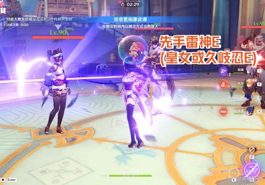 攻略一·纠集升腾的热涡:配队情况:刻晴、托马、香菱、雷神(下位替代皇女、久岐忍等)。输出手法:雷神E(皇女、久岐忍E)→托马QE→接香菱EQ→切刻晴QEE站场A重击,循环