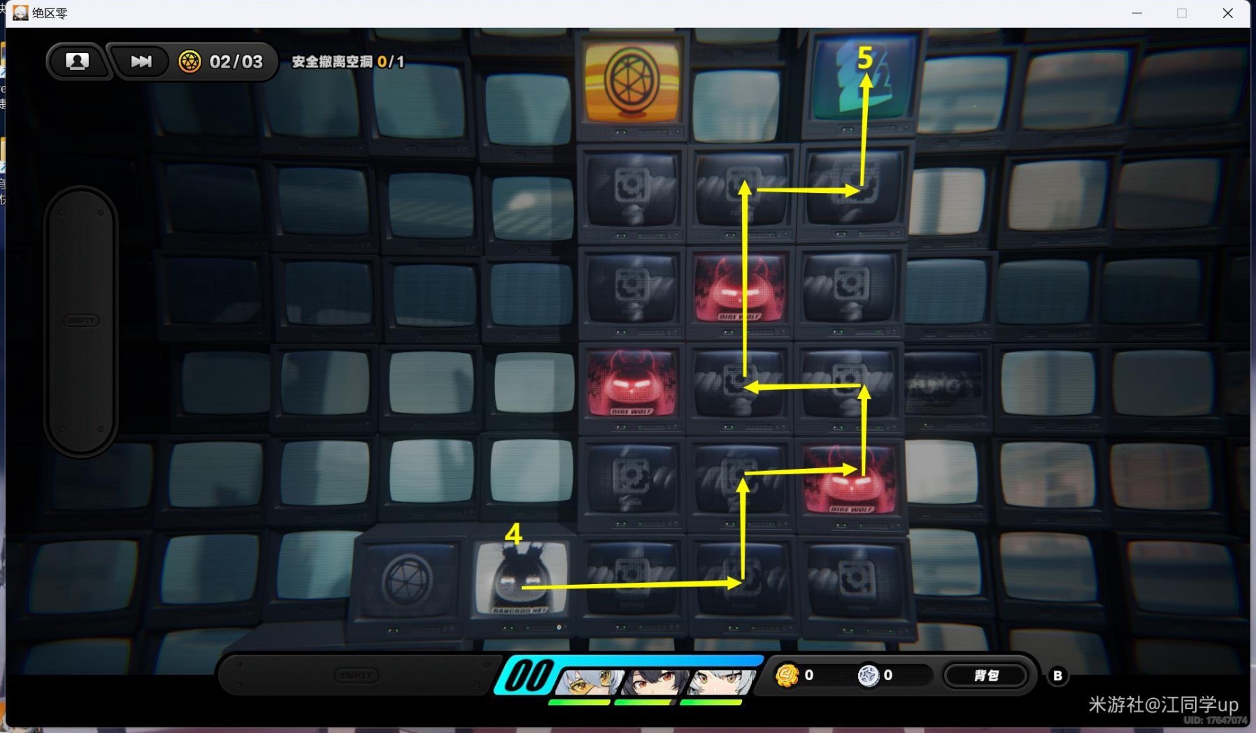 (5)按照下图路线走去5区域即可。图中3个红色敌人会不断移动追击我们,按照下图路线走,敌人就不会追上我们。若被追上,则无法获得攻略开头提到的隐藏成就“安全距离”。