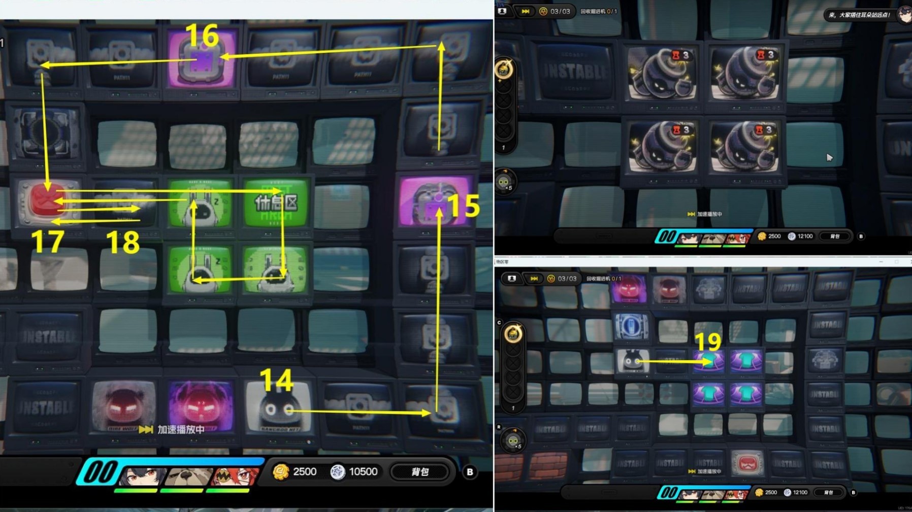 (6)前往15-18区域,然后在4个休息区域转一圈,接着在17和18区域来回走几次,4个休息区域将会出现4个炸弹,然后前往出现的19区域传送