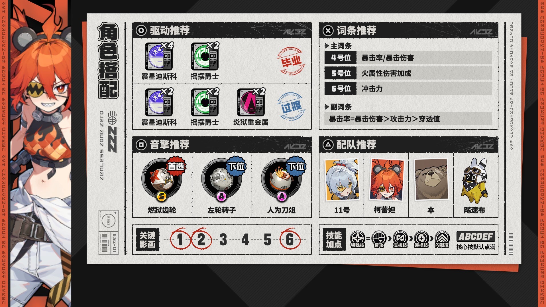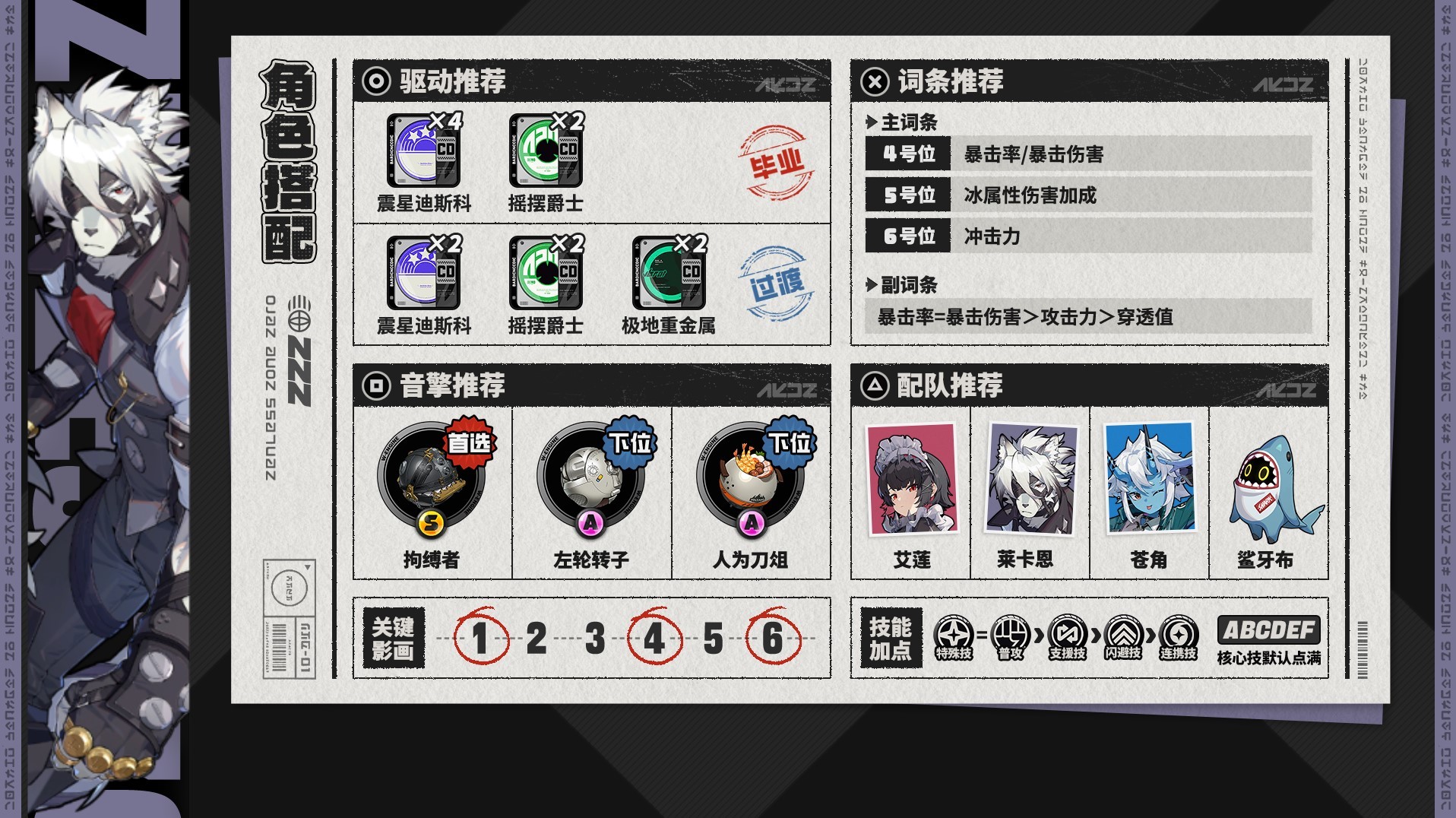 队伍搭配上,和可琳或丽娜同队也能触发额外能力,赋予敌人高额的失衡易伤效果,可辅助的主C角色数量较多。即使舍弃额外能力,狼哥的角色素质也很优秀,能直接加入任何缺击破的阵容,泛用性拉满。