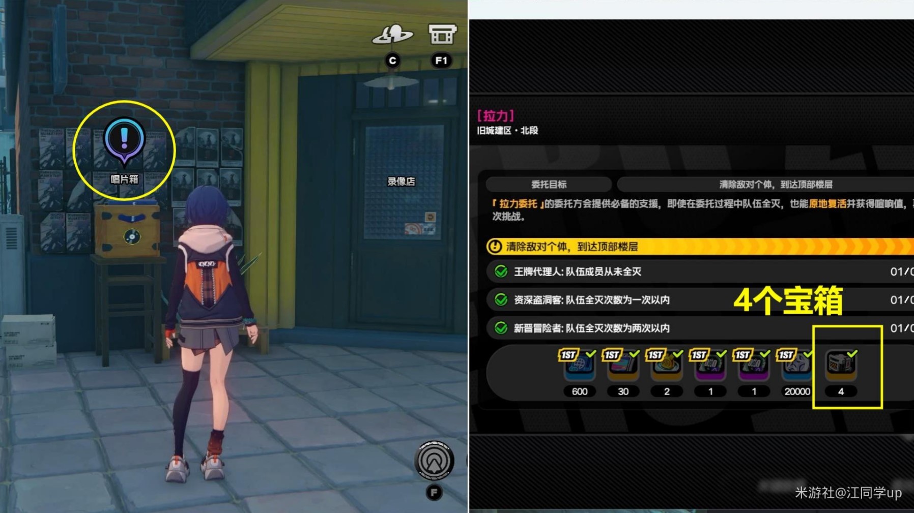 (2)接取该任务需要最少26级,并且主线做到第2章【幕间】后,在【录像店】门口【唱片箱】处接到【战斗委托-旧城建区·北段】。