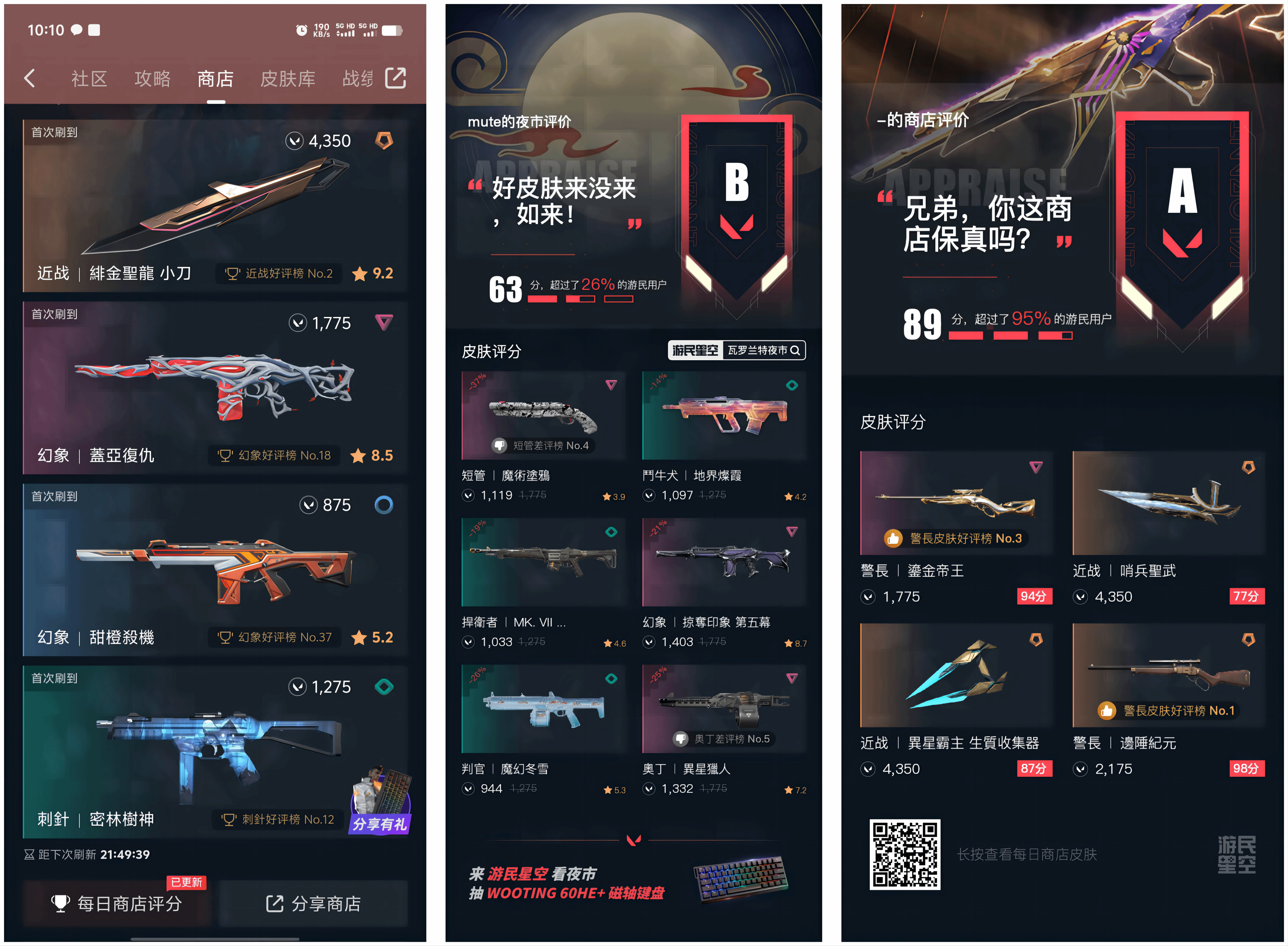 除了皮肤信息,国际服玩家还可以在游民查看每日商店刷新的皮肤,以及在夜市活动期间,可以第一时间了解自己的夜市刷新情况。