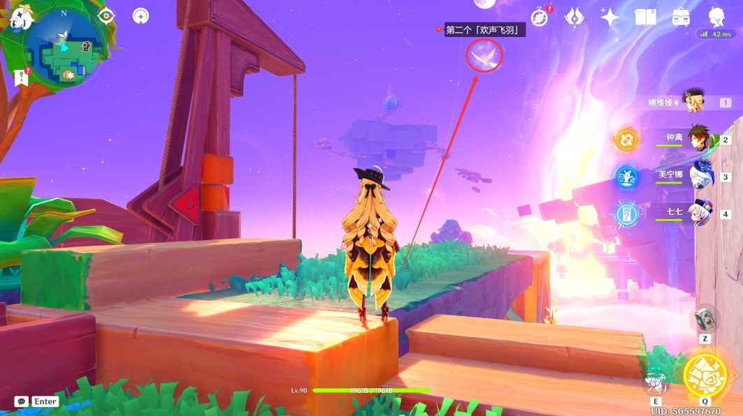 在叠架村左侧的锚点,触碰悬浮小岛上即可