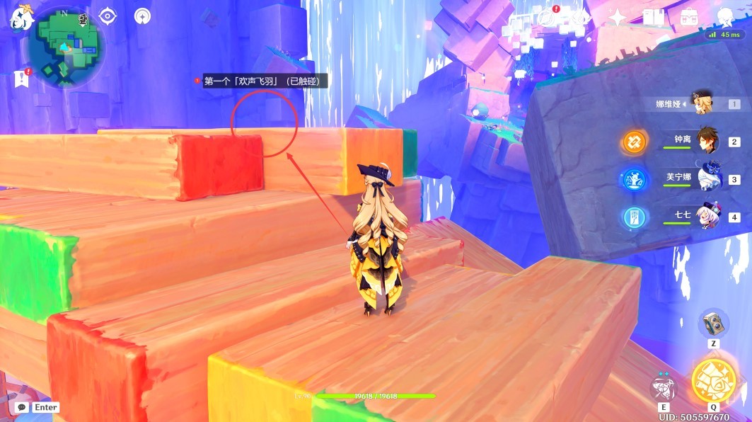 在叠架村右侧的锚点,飞过悬浮方块触碰即可