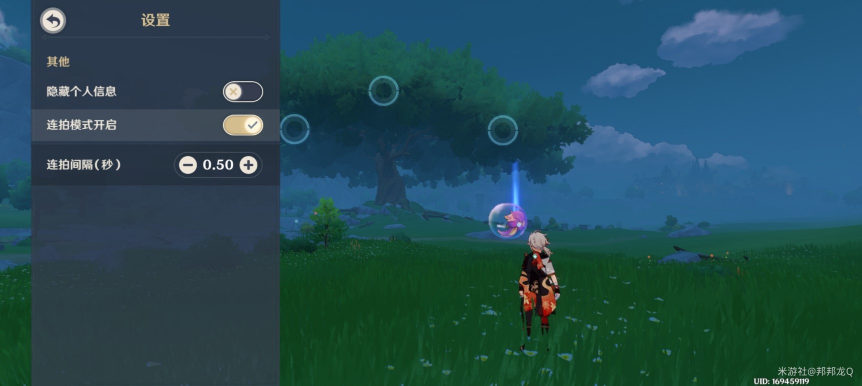 保证图中需要出现三个圆,点击确认,长按普攻键瞬间按下活动照相机