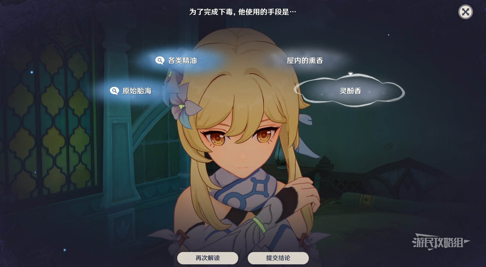 开始第二项推理,首先解读屋内的熏香,然后解读灵酚香,最后提交结论。