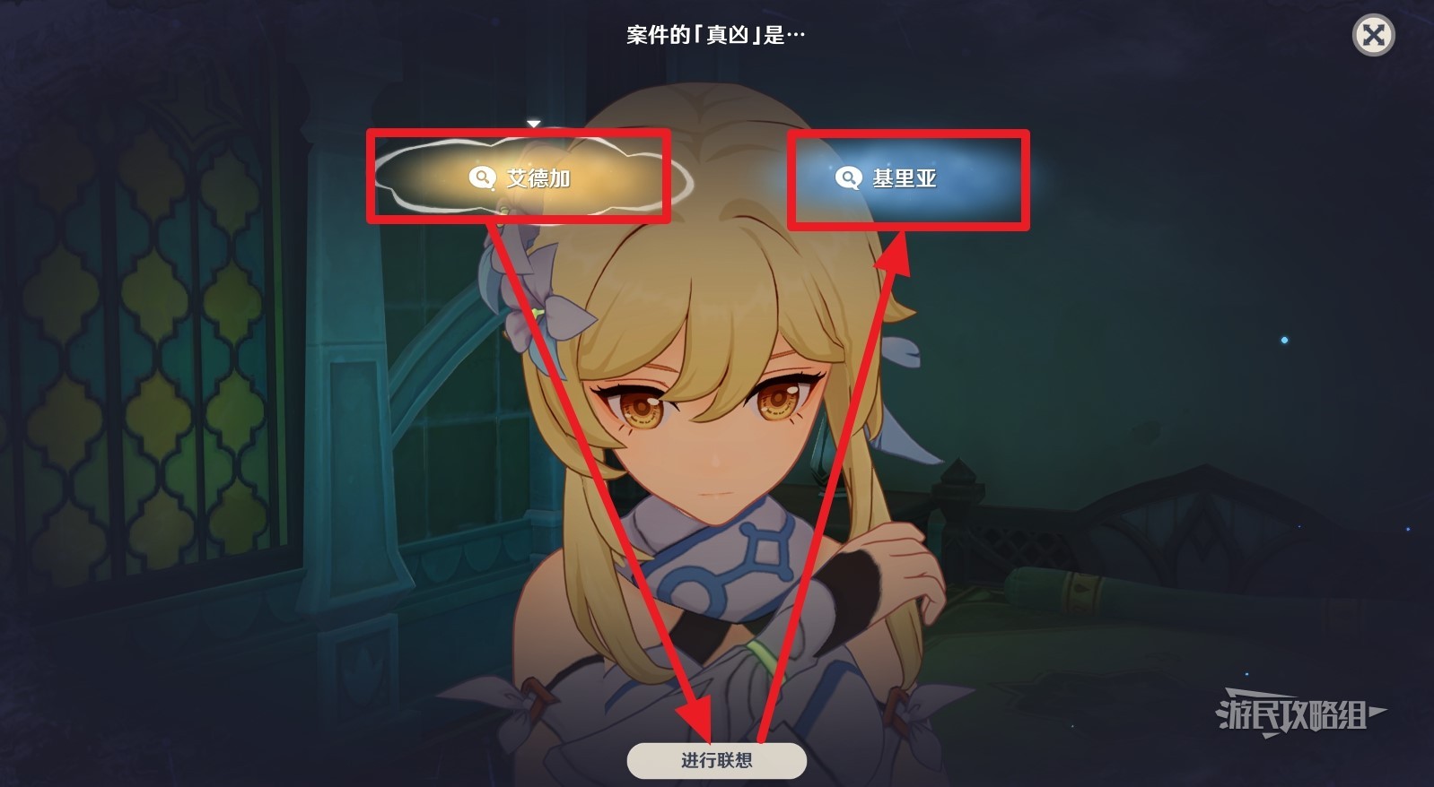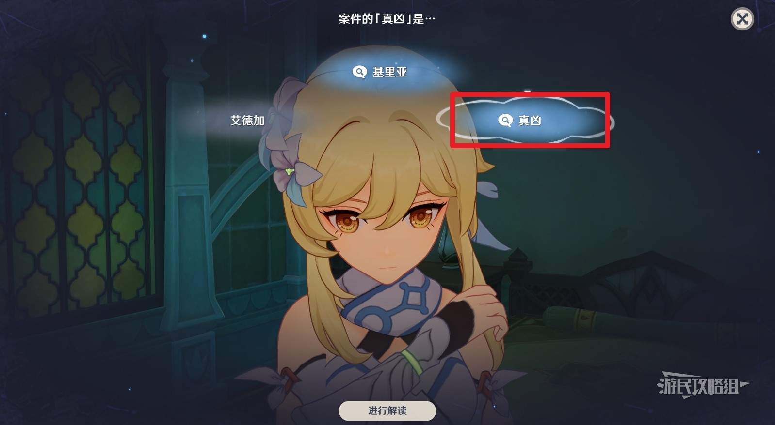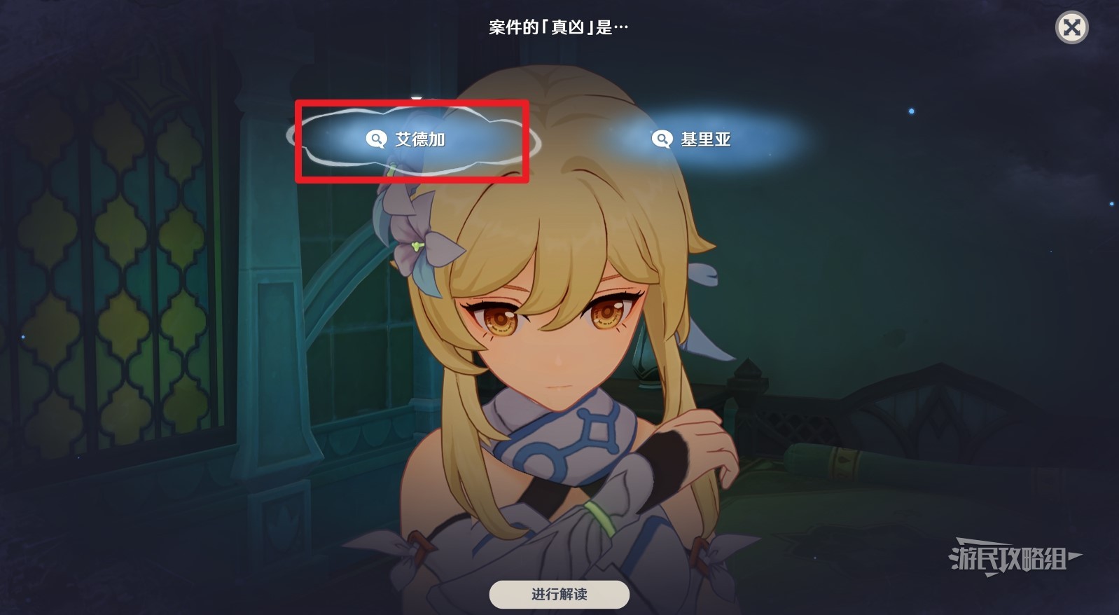 开始第三项推理,首先解读艾德加,然后联想到艾德加和基里亚,最后解读真凶并提交结论。