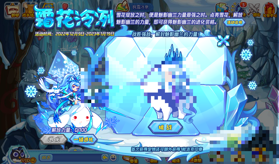 每天都有5次挑战机遇,挑战不成功、更新不受影响主题活动进行。每一次挑战获胜可得到6点释放出来能量。总计释放动能100点就可以打开:幻影幽芳进化