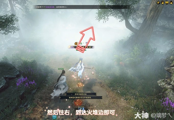 前往流萤谷,获得字条提示,使用技能打散雾气,直走第一个岔路口往左,再往右,到达五重溪(579,759)火堆边找到第一个箱子。