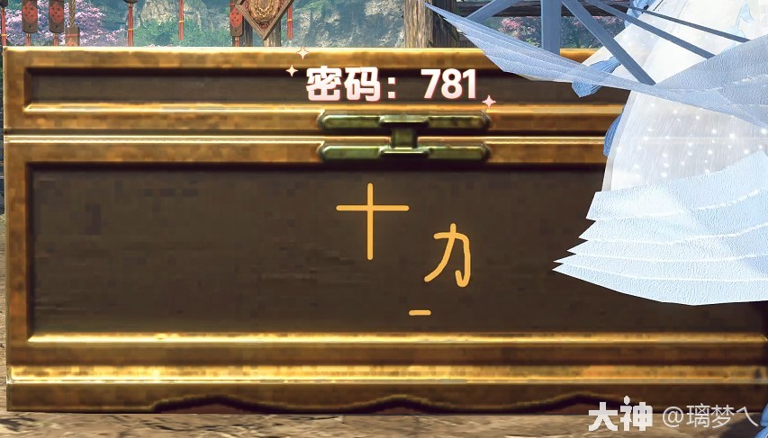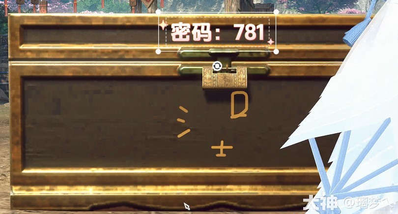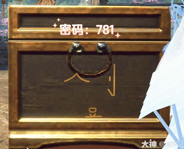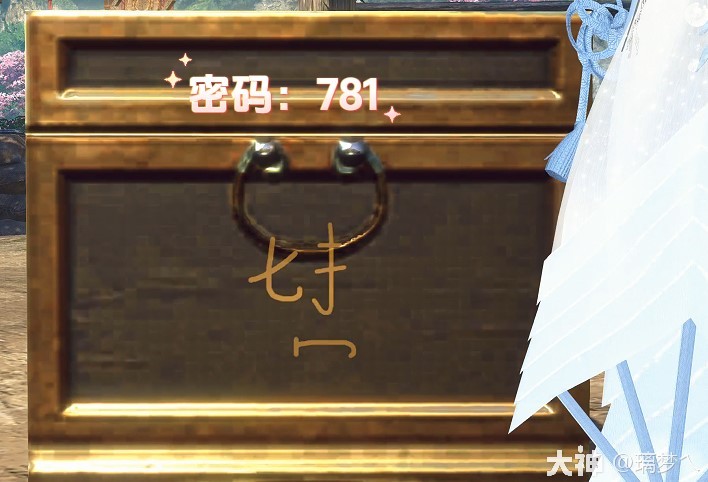 按照剧情走,桃溪村宝箱密码是781,根据箱子笔画拼凑出三个大写数字柒、捌、壹,自己排列组合试试就解开了!
