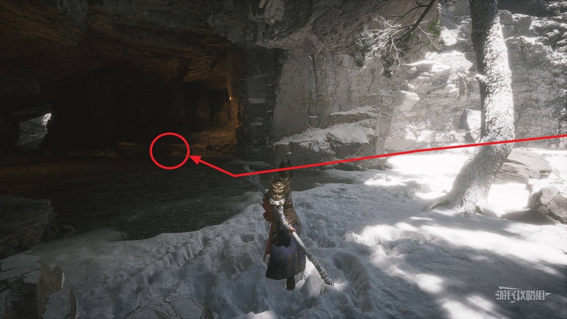 沿着唯一的路走,先从室内到达下雪的室外,再从室外进入室内时,可以看到佛像旁边有一个棺材,打开棺材即可获得。