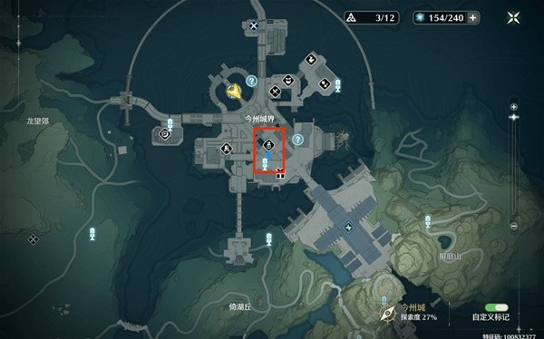 具体位置的图中黄色光柱就是金阳风的具体位置,如果找不到可以用感知 (就是下面这个圈起来的东西)