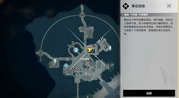 第一处:在今州城界找到店主攀花,购买食谱和菜肴。