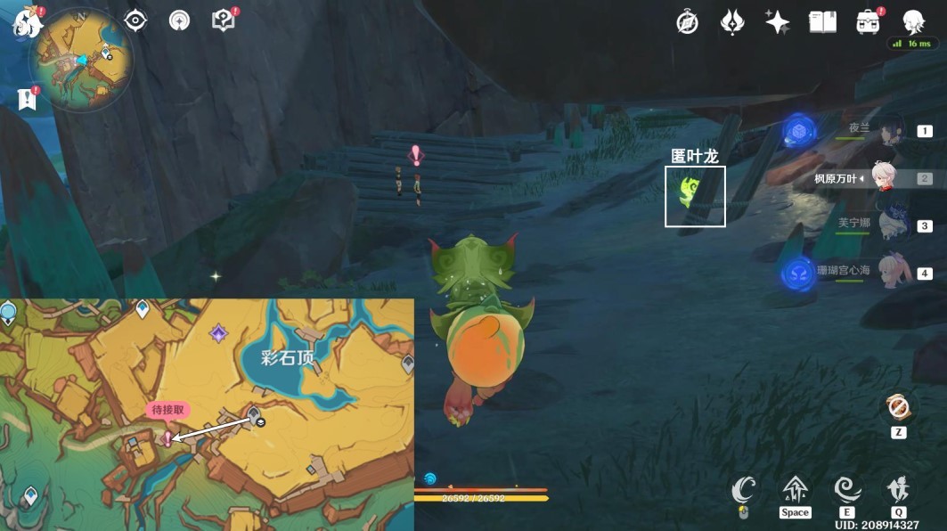 到彩石顶西南方向的山洞内锚点,向西南方向走,找到胡妮,与其对话接取任务;