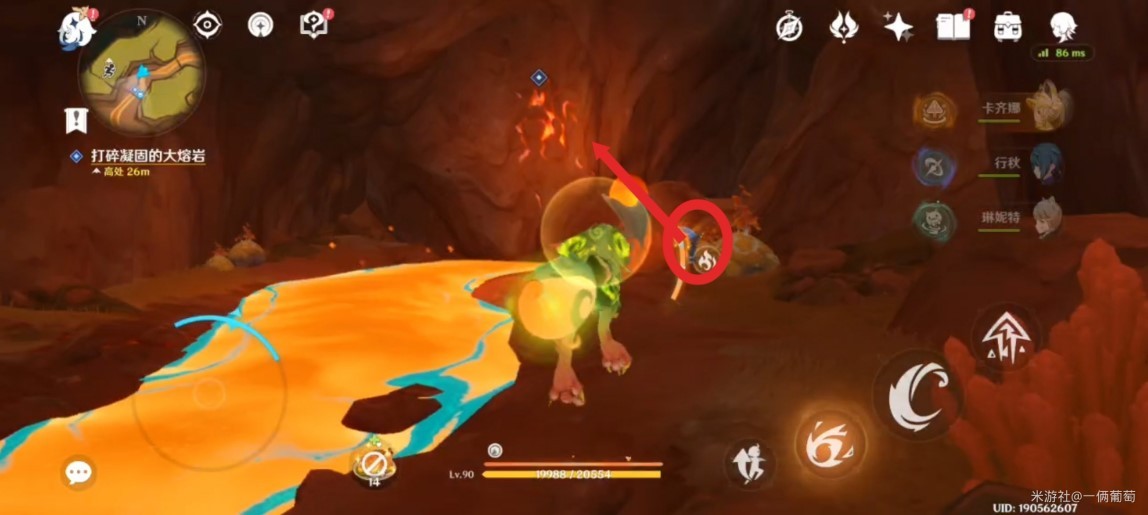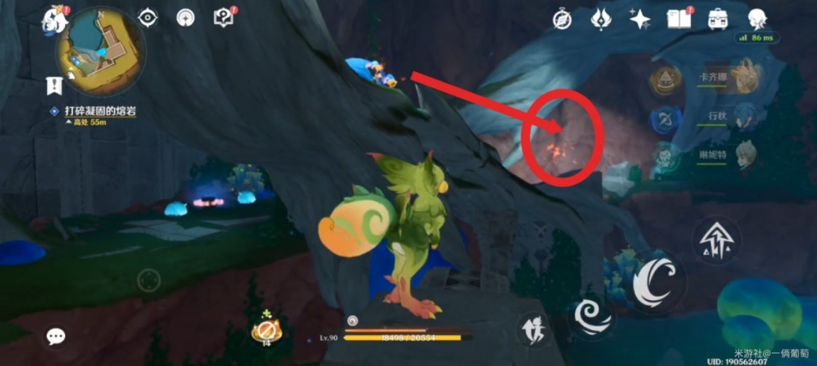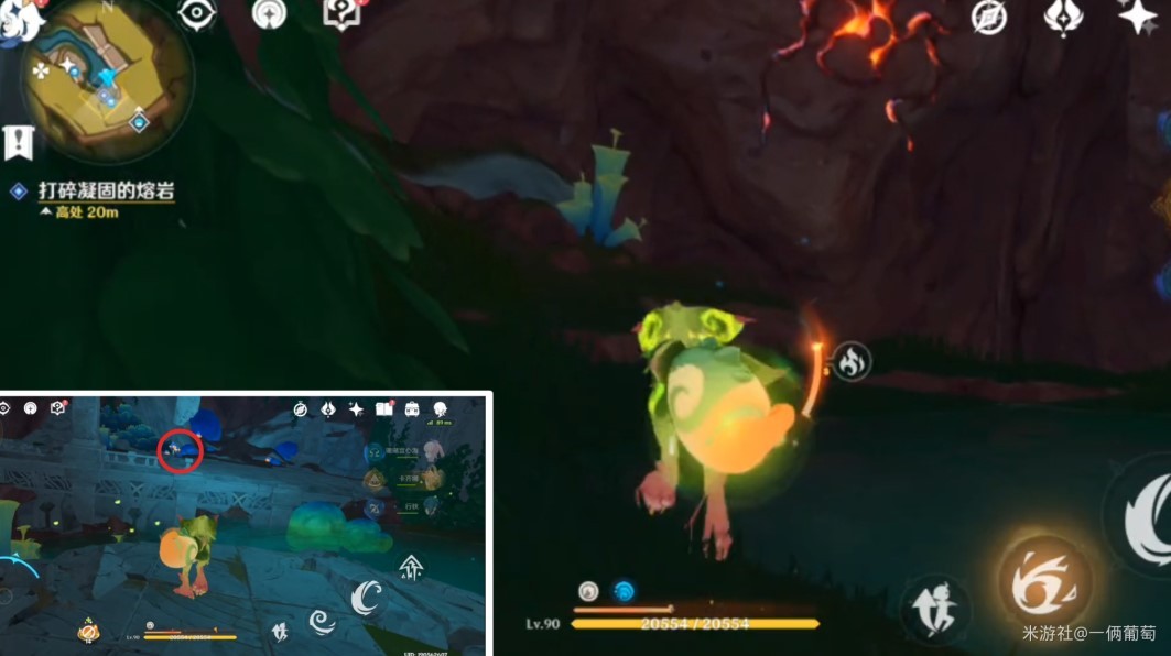 来到地下熔浆层,往最细长(小地图右上角)深入,找到堵住的大熔岩再次用果实炸。