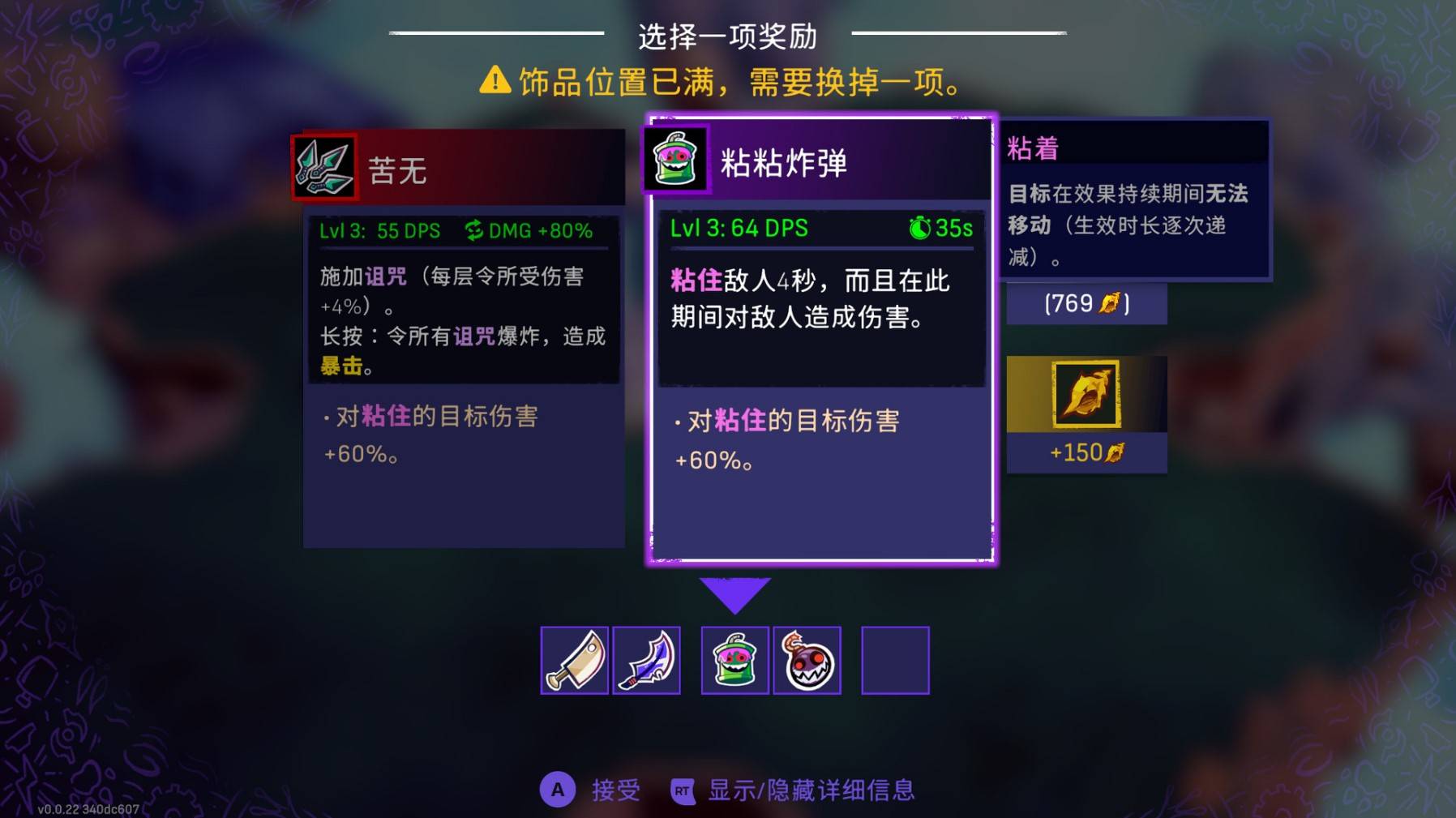 游戏系统类似《哈迪斯》,技能系统和武器系统相互割裂,缺少平滑的转化关系。武器和饰品系统存在替代问题,缺乏升级机制。