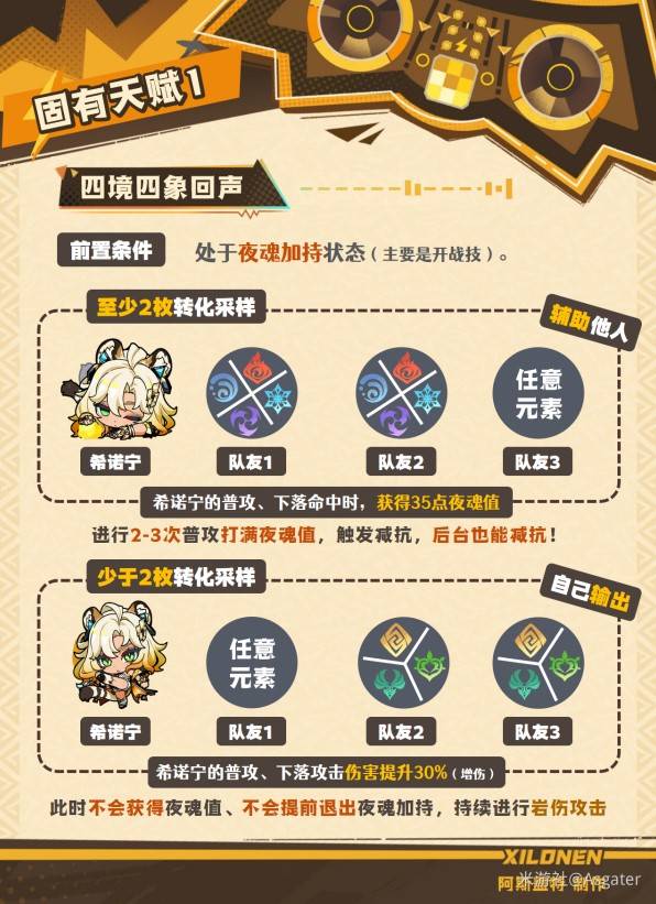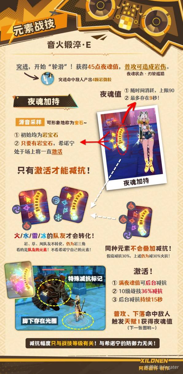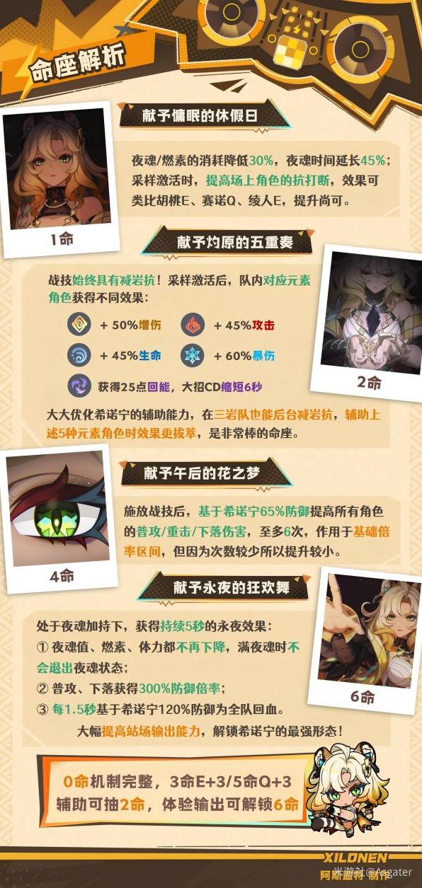 ③ 一定程度上优化场上角色的输出容错率,同时降低夜魂消耗可让希诺宁打出5套完整普攻、对岩伤输出有一定提升。