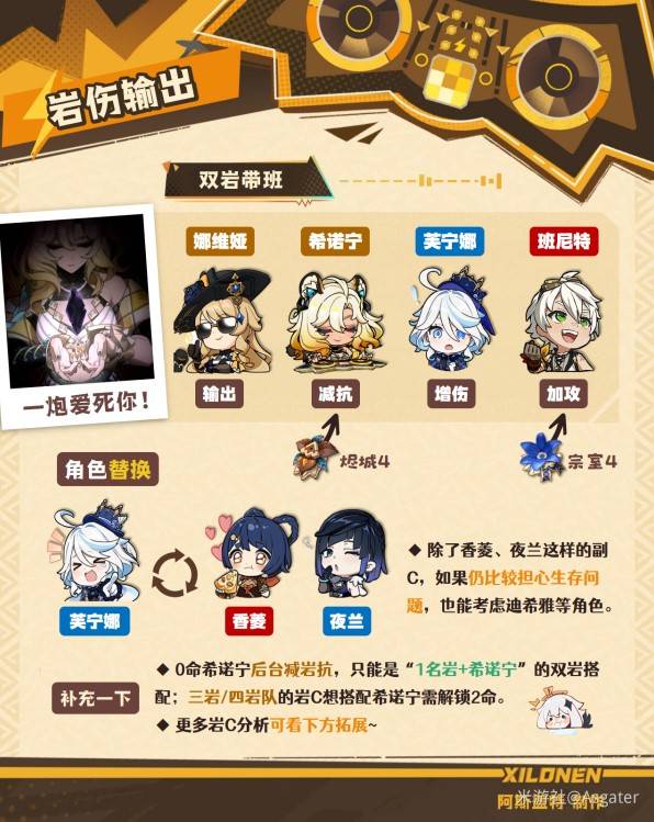 ② 对希诺宁的岩伤站场提升非常大,配合战技、命座,6命希诺宁的输出非常强劲!