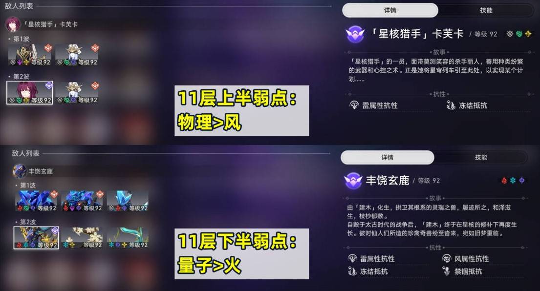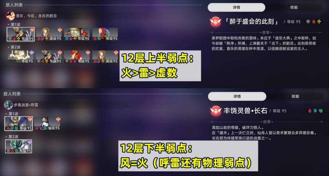 12层上半敌人有物理弱点和风弱点,下半有火和量子弱点;呼雷有火和风弱点,以及物理弱点。