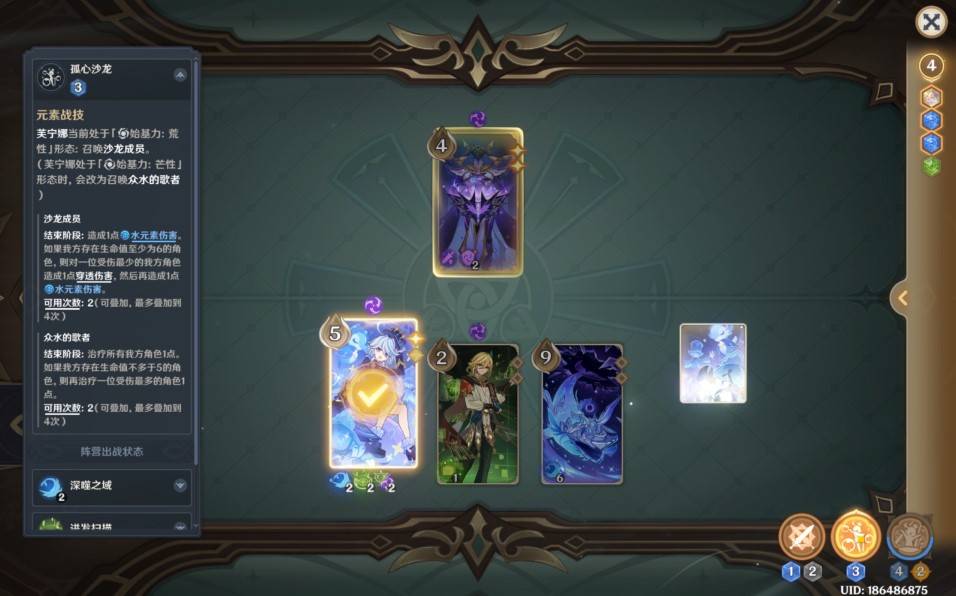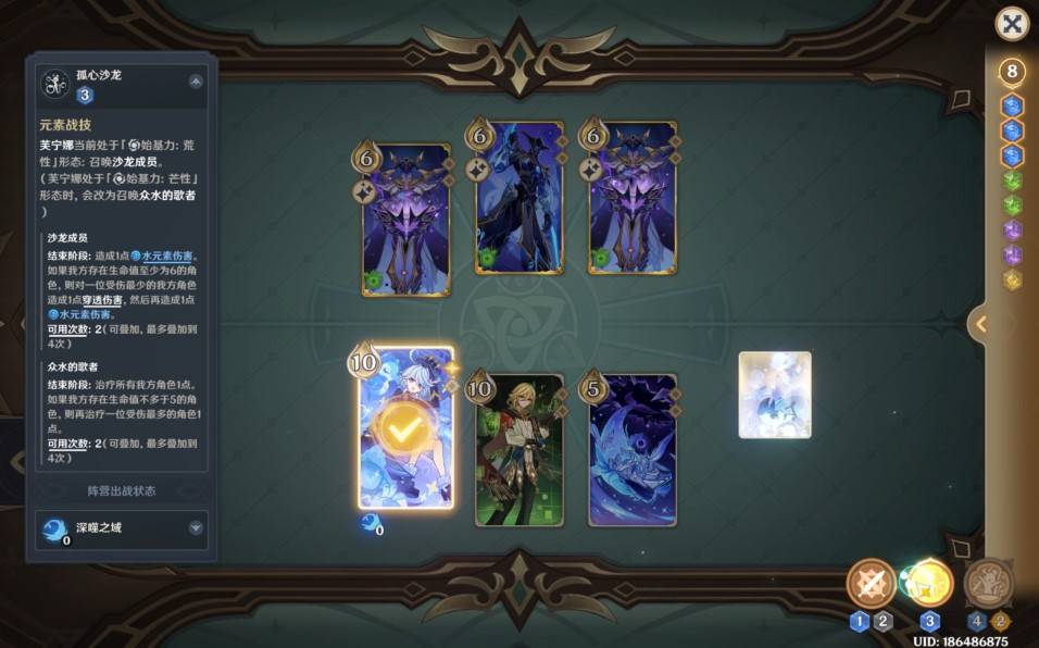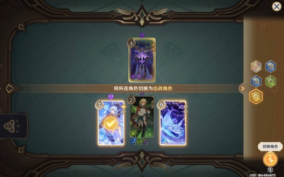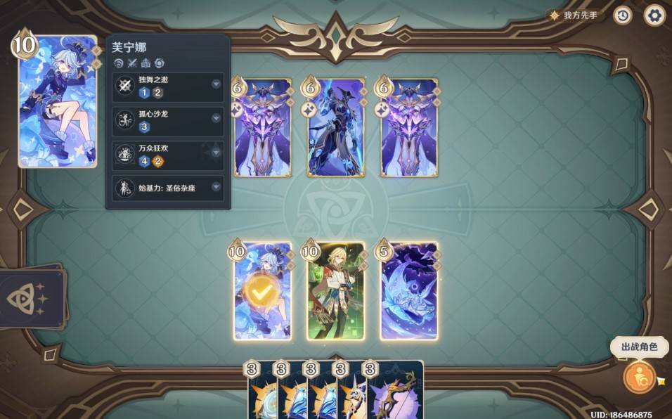 选择芙宁娜、卡维、吞星之鲸,手牌中全部编入3费卡。