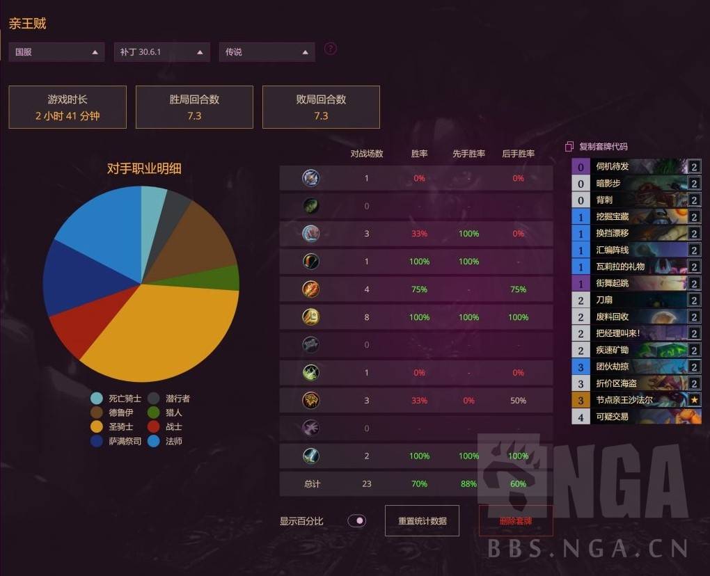 兄弟们,我又来推荐便宜好用的卡组了,补丁后在传说1w-2w分段实测70%胜率,最重要的是这套卡组除了免费卡以外全是蓝白卡,又便宜又好玩还有强度,我愿称之为盗贼版本答案!