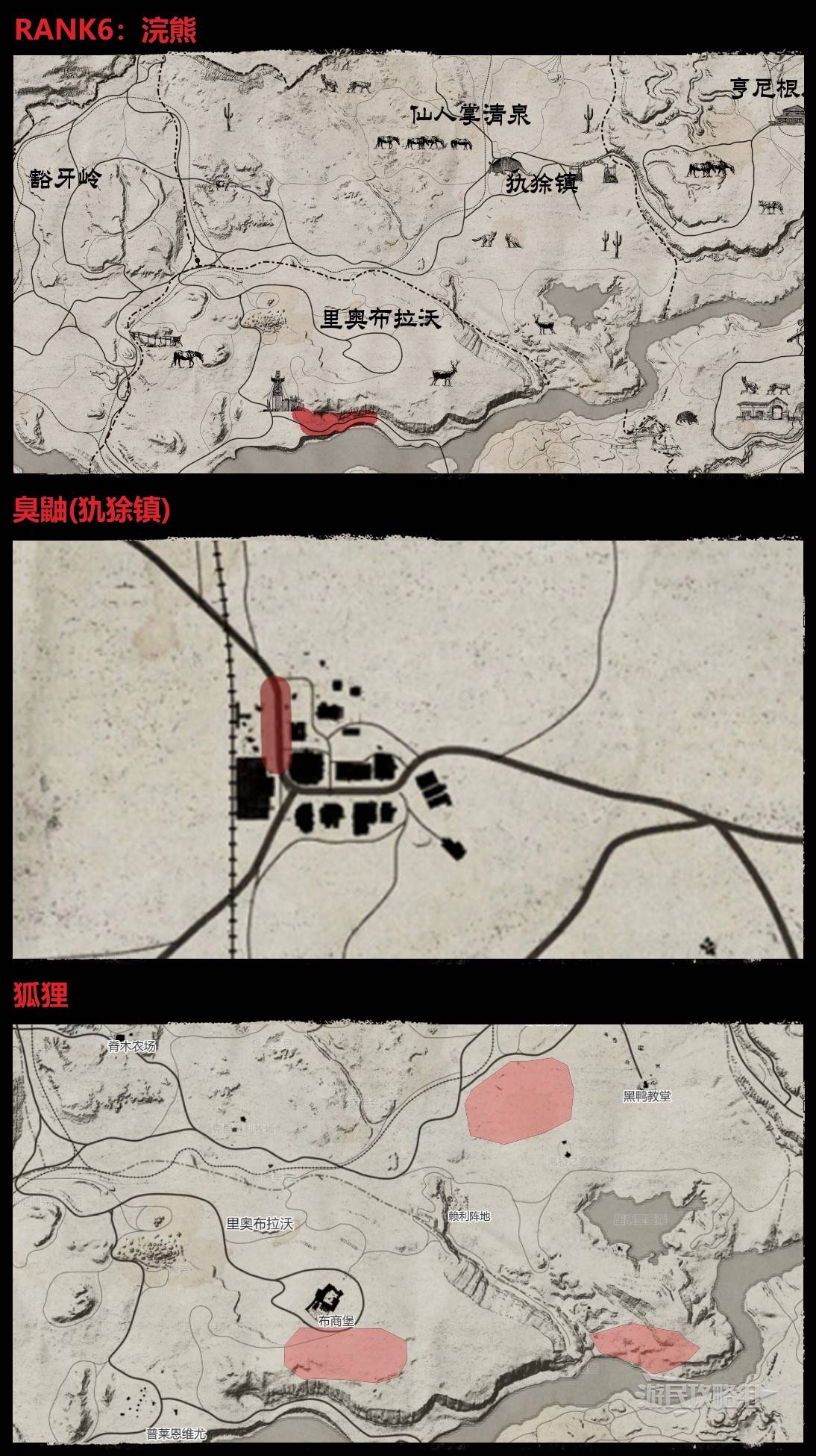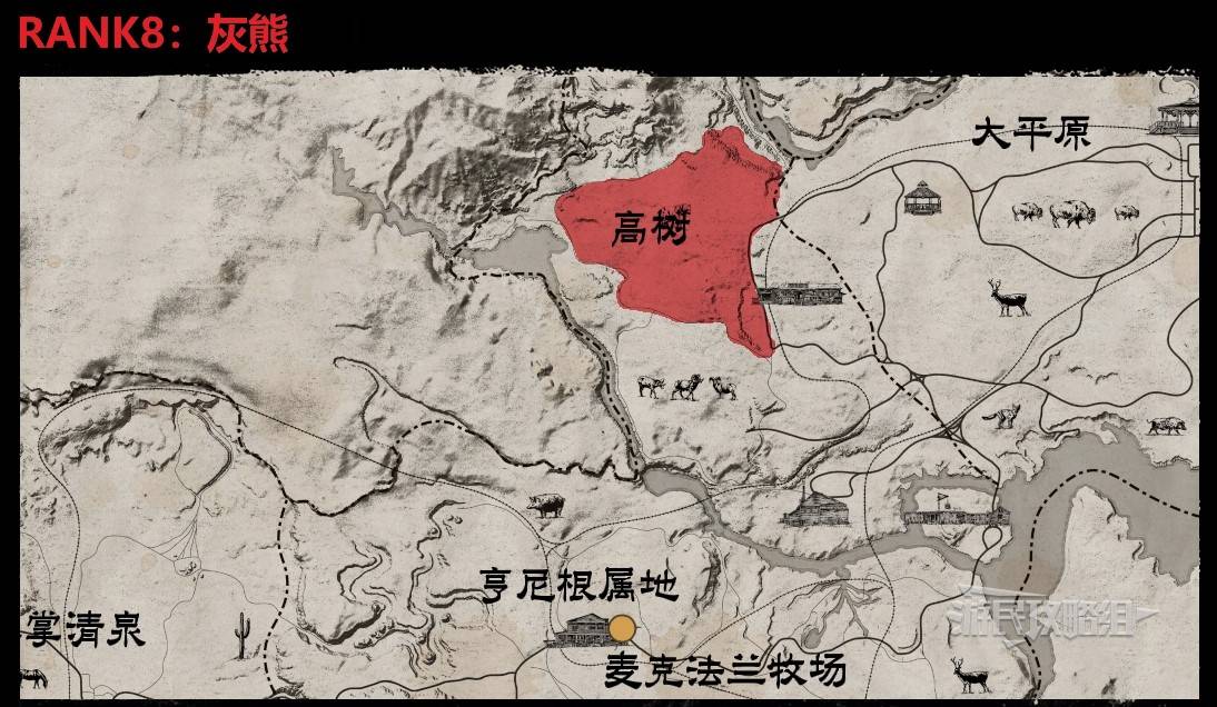 需要注意的是:RANK8灰熊可以开两枪然后再用近战刀一次即可击杀;RANK9可汗需要先购买诱饵并在指定区域内使用把它引诱出来再击杀。