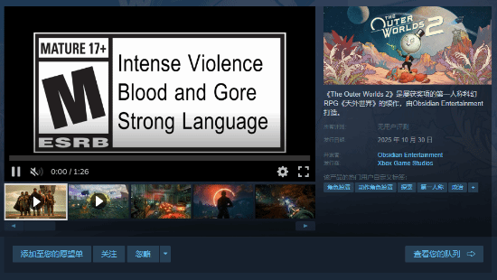 第一人称射击游戏《天外世界2》在Steam商城正式开启预购,标准版售价298元,豪华版售价498元,预计于2025年10月30日正式发布。对于玩家们来说,这无疑是个令人振奋的消息!豪华版的玩家可以提前五天体验这个新作,简直是游戏界的VIP待遇!